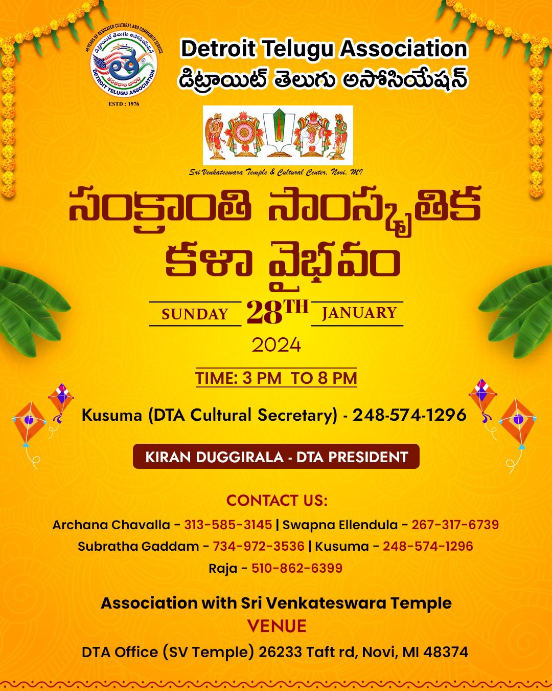 April 20, 2024 @ 3:00 pm - June 21, 2024 @ 10:37 am DTA Ugadi Utsavalu – 2024 The Hindu Temple of Canton